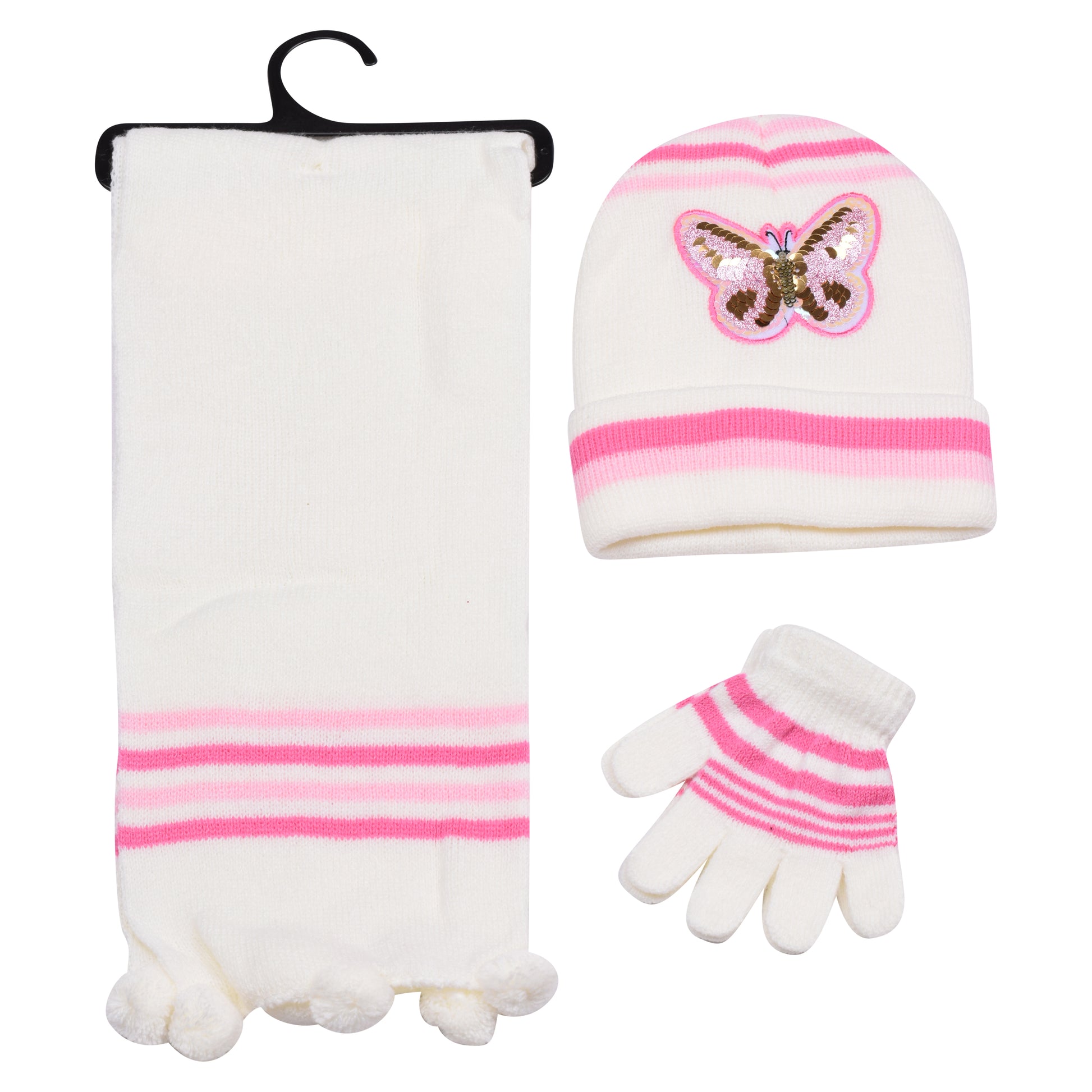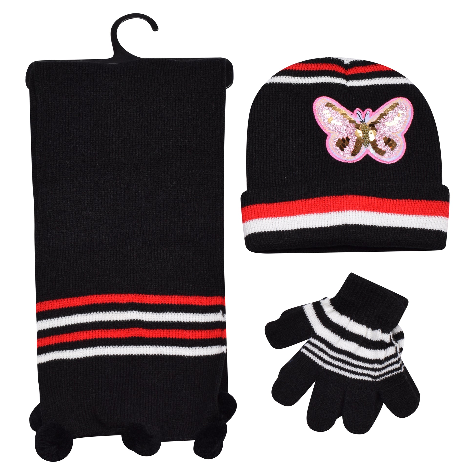 Fun, cosy, and colourful — this 3-piece knitted set is perfect for keeping kids warm during winter. Each set features a cute sequin butterfly on the hat, paired with matching striped scarf and gloves. Soft acrylic knit ensures warmth and comfort while adding playful character kids will love.