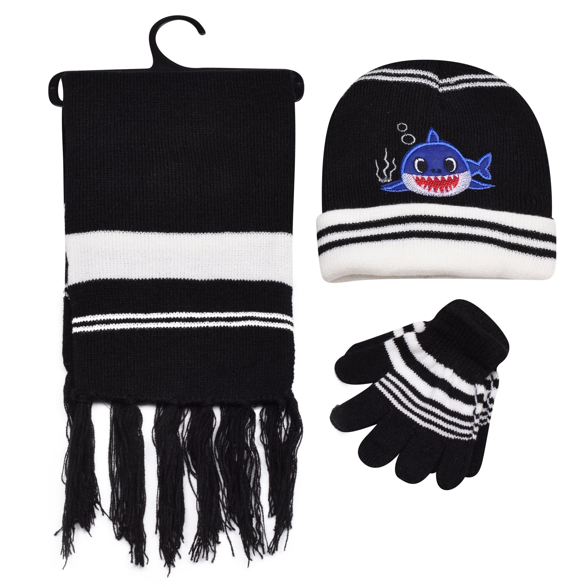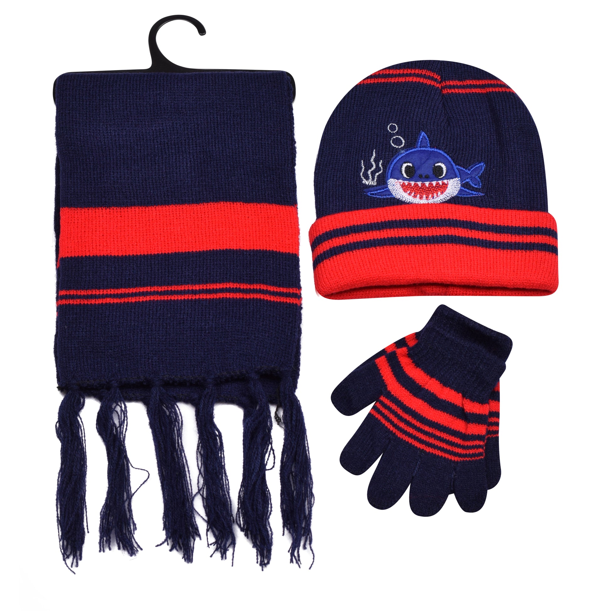 Fun, cosy, and colourful — this 3-piece knitted set is perfect for keeping kids warm during winter. Each set features a cute embroidered shark on the hat, paired with matching striped scarf and gloves. Soft acrylic knit ensures warmth and comfort while adding playful character kids will love.
