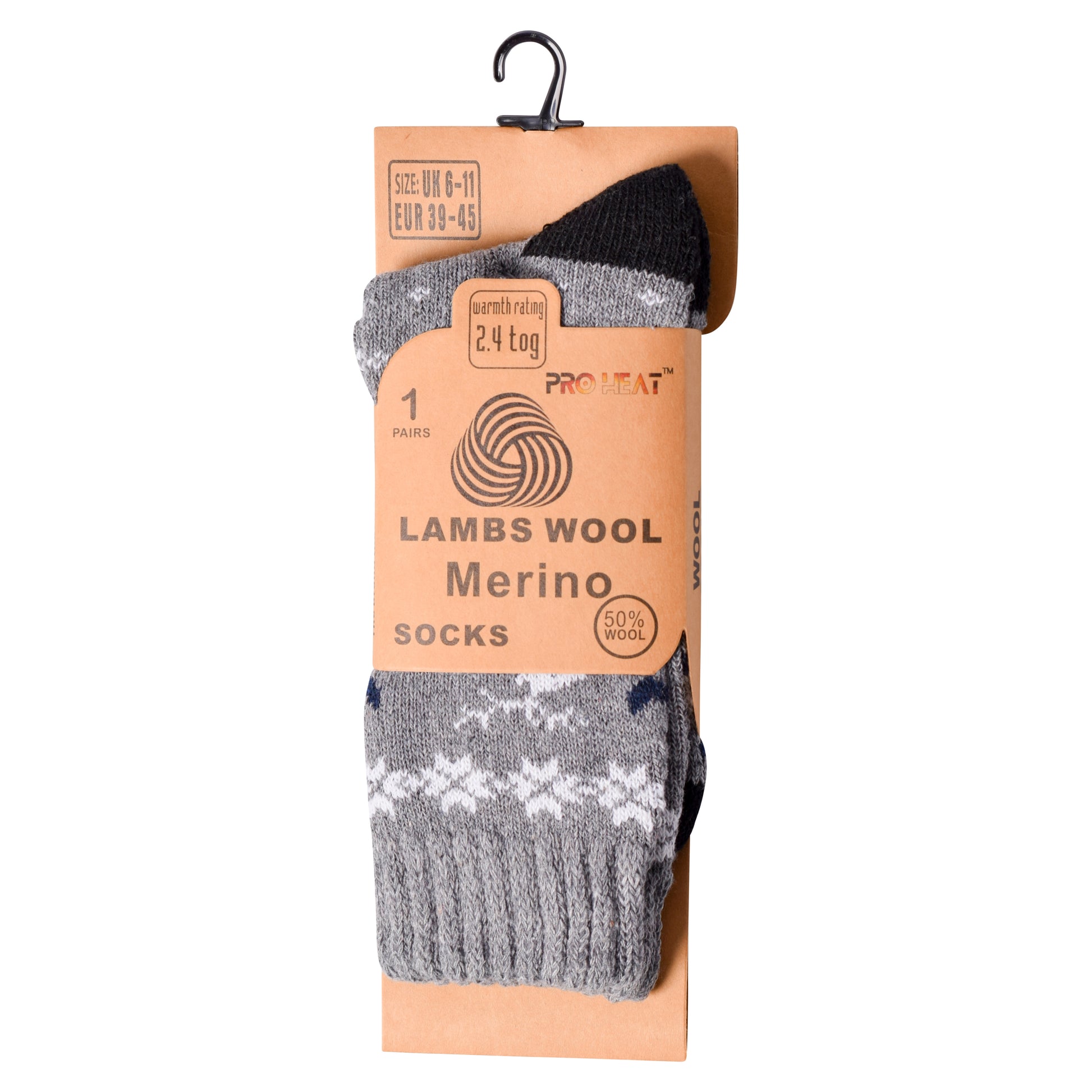 Stay warm and comfortable with our premium Men's Merino Lambs Wool Reindeer Pattern Socks, perfect for the colder months!
