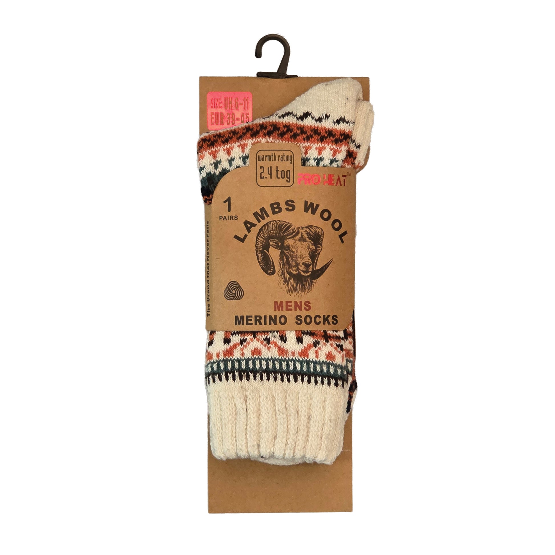 Stay warm and comfortable with our premium Men's Merino Lambs Wool Fair Isle Snowflake Pattern Socks, perfect for the colder months!