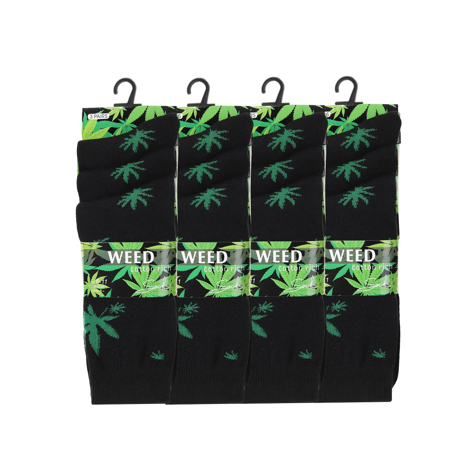 Mens Dress Socks - Black/ Green Ganja Leaf (12 Pairs)